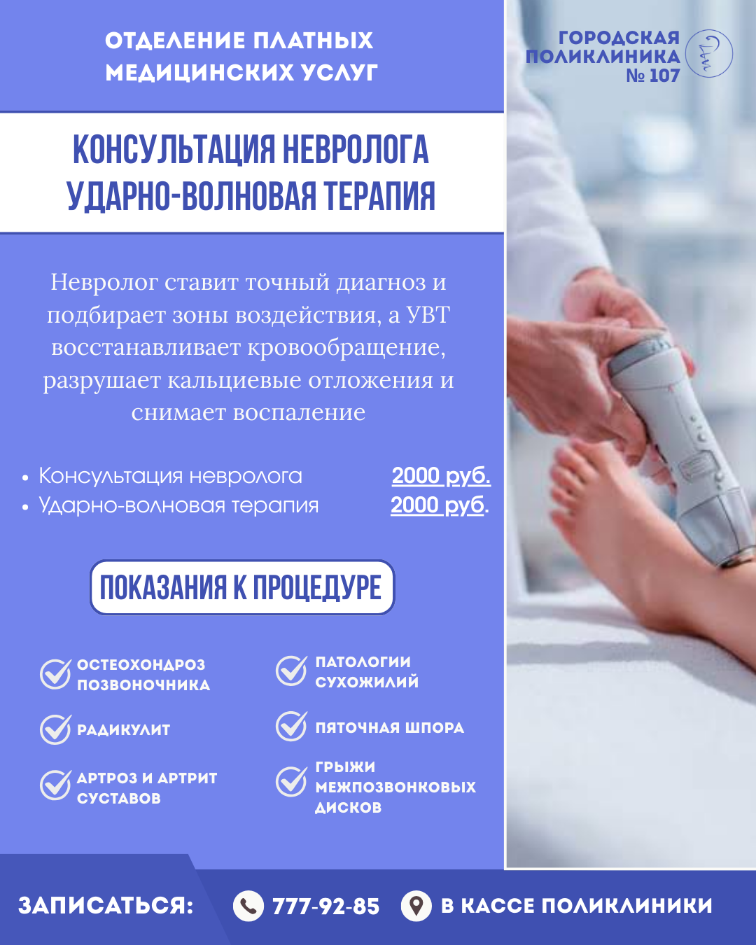 В поликлиническом отделении №107 на платной основе доступны консультация невролога и ударно-волновая терапия